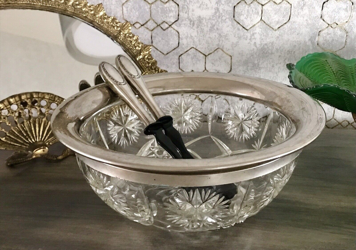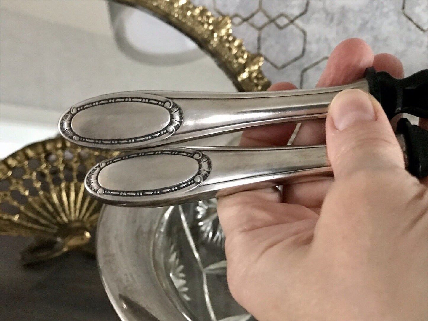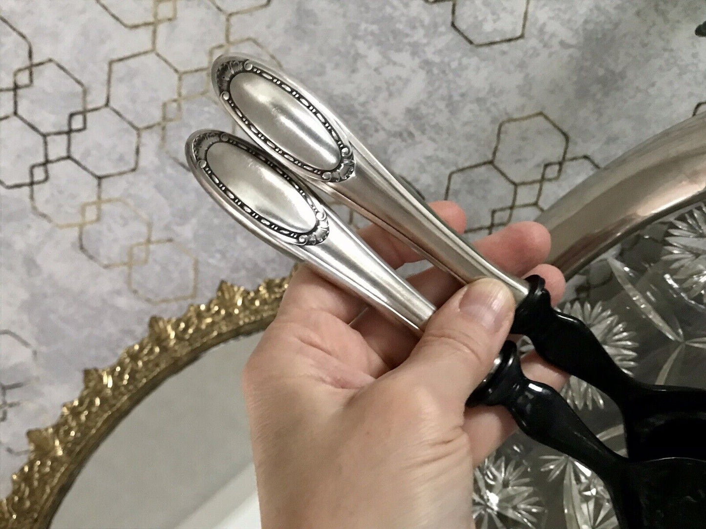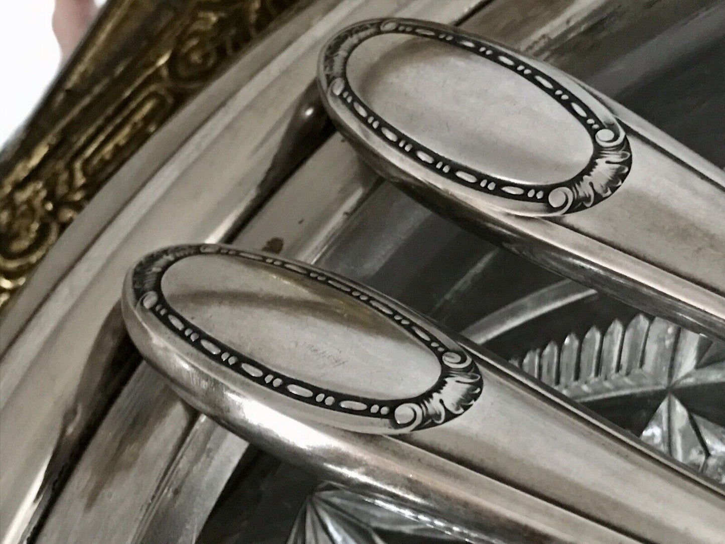 Kommodengriff präsentiert ein wundervolles sehr dekoratives antikes versilbertes 2 teiliges Salatbesteck
