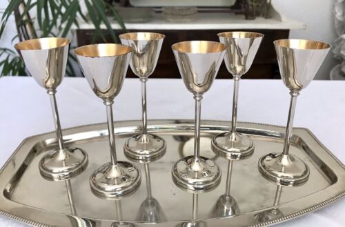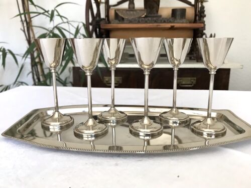Antik schönes Set versilbert? verchromt? 6 Likörbecher Tablett Art Déco