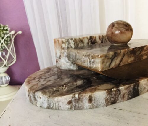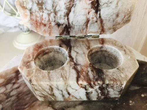 Kommodengriff präsentiert ein wunderschönes altes antikes 2 teigiges Schreibtischgarnitur aus Marmor