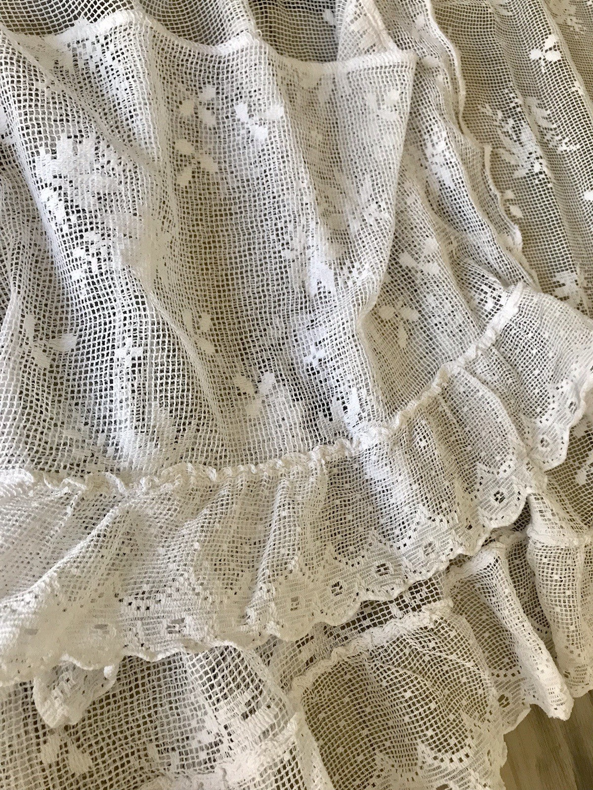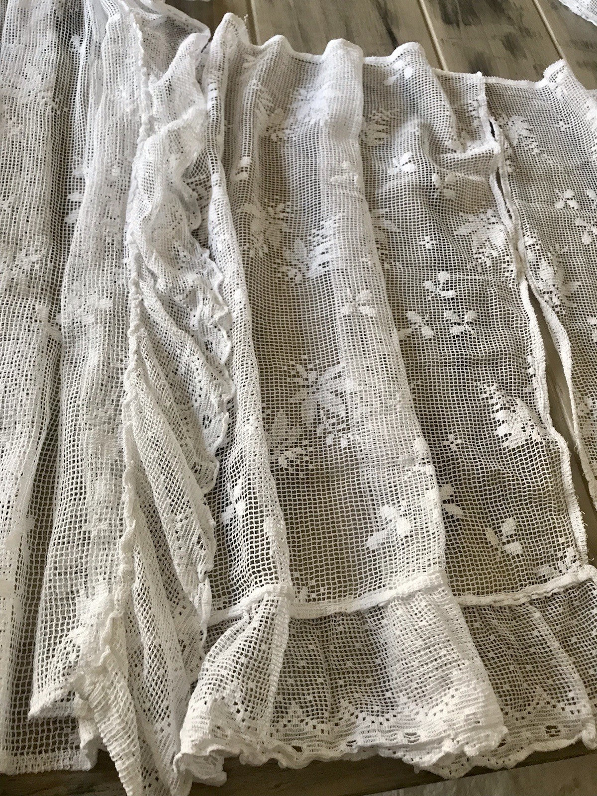 Antik Set 5tlg Fenster Gardine Vorhang Volant Baumwolle Musselin? Filetspitze