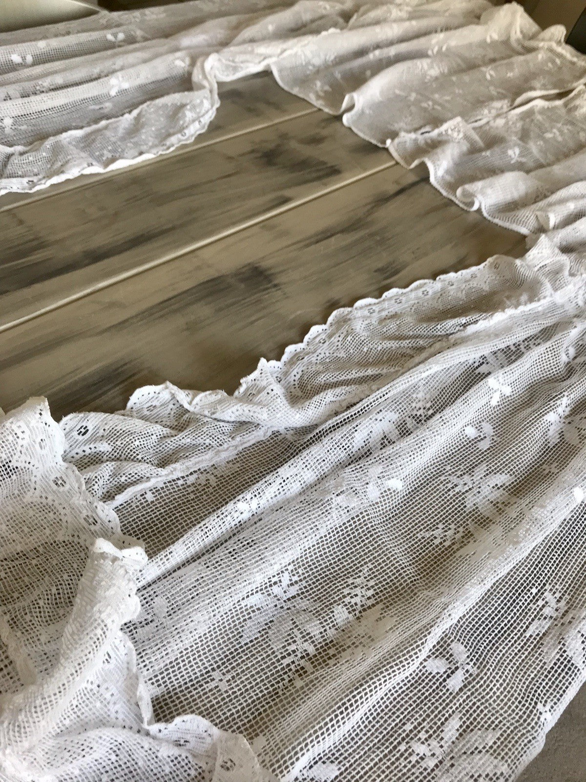 Kommodengriff präsentiert ein 5teiliges Set für 1 Fenster von wunderschönen antiken aus Baumwolle und wohl Filetspitze oder Klöppelspitze gefertigte wundervolle!!!Scheibengardine Gardinen