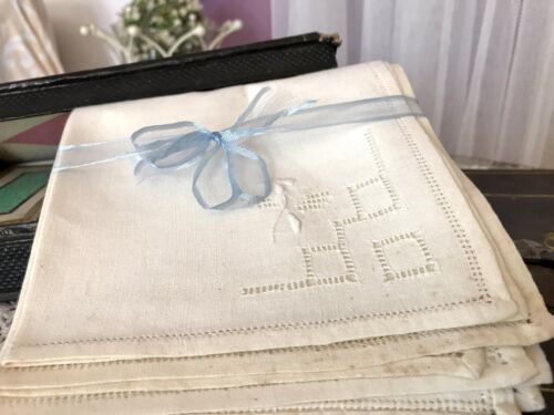 Antik Set 6x Taschentuch Servietten Jugendstil Stickerei Lochsaum wohl Leinen