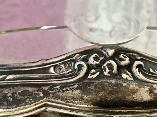 Antik Silber 800 2x Saliere 1 Zahnstocher-Schale Kristall Glaseinsatz Jugendstil