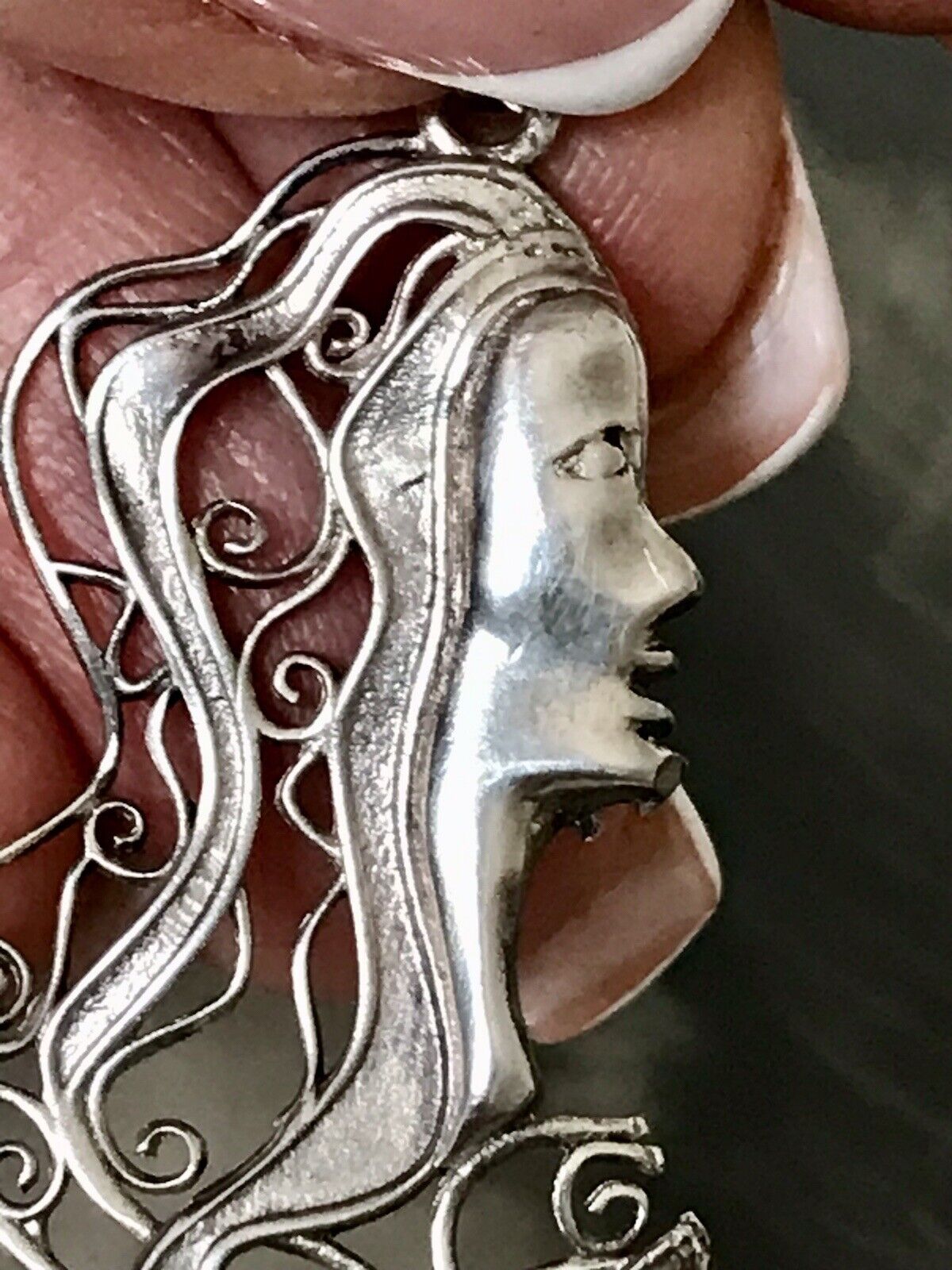 Antik? Silber Anhänger in Jugendstil markant Frau fließende Linie