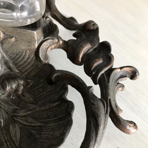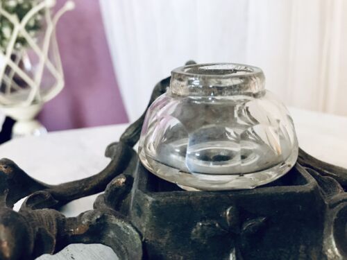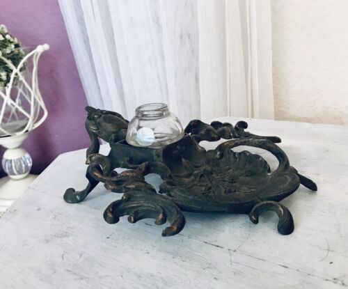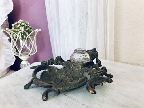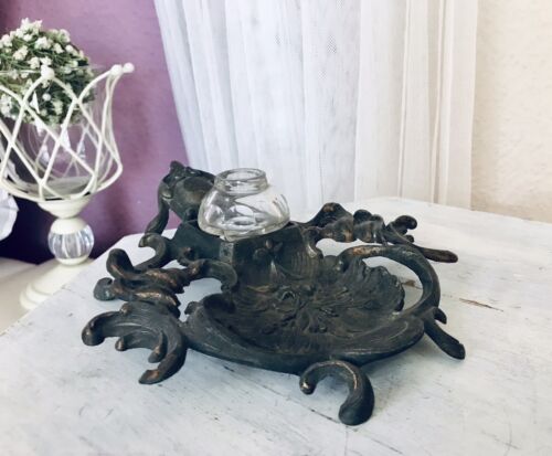 Antik Tintenfass Schreibtischgarnitur deutsch Jugendstil Bronze mit Glaseinsatz
