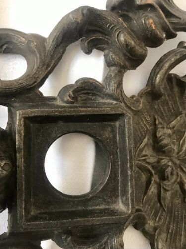 Über der Ablageschale thront die quadratische Öffnung für den Glaseinsatz, hinter dem mittig ein Zier-Element mit mittiger Kartusche heraussticht.