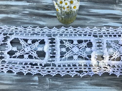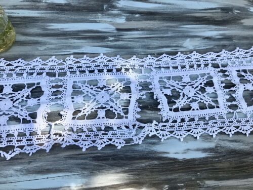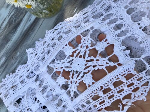 Kommodengriff präsentiert ein wunderschönes antikes weißes rechteckiges handgehäkeltes bzw. geklöppeltes Tischband schmalen Läufer aus Baumwolle