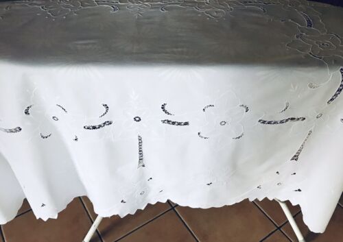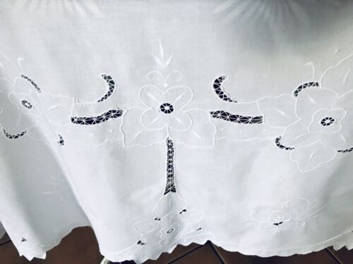 Antik Tischdecke 130 x 165 Stickerei weiß Baumwolle Spitze elegant