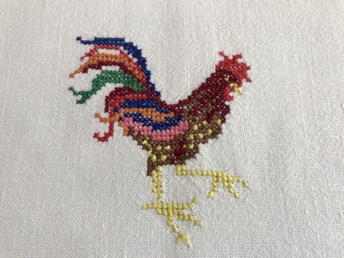 Antik Tischdecke 136x136 bunte Kreuzstich Stickerei Hahn Baumwolle WunderSCHÖN