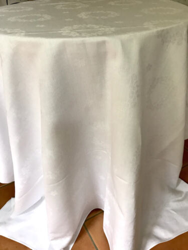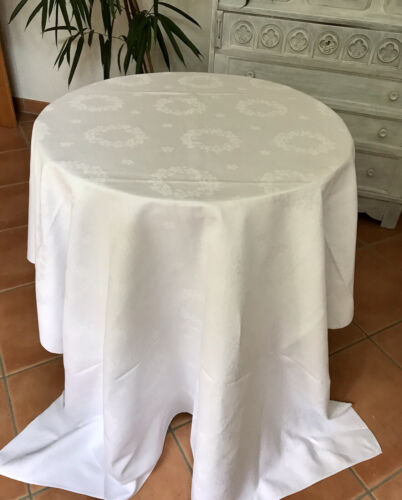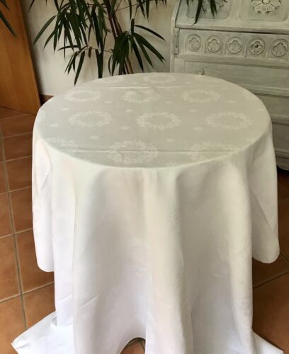 Antik Tischdecke Tafeltuch 135 cm x 156 cm weiß Damast Baumwolle Blumenkränze
