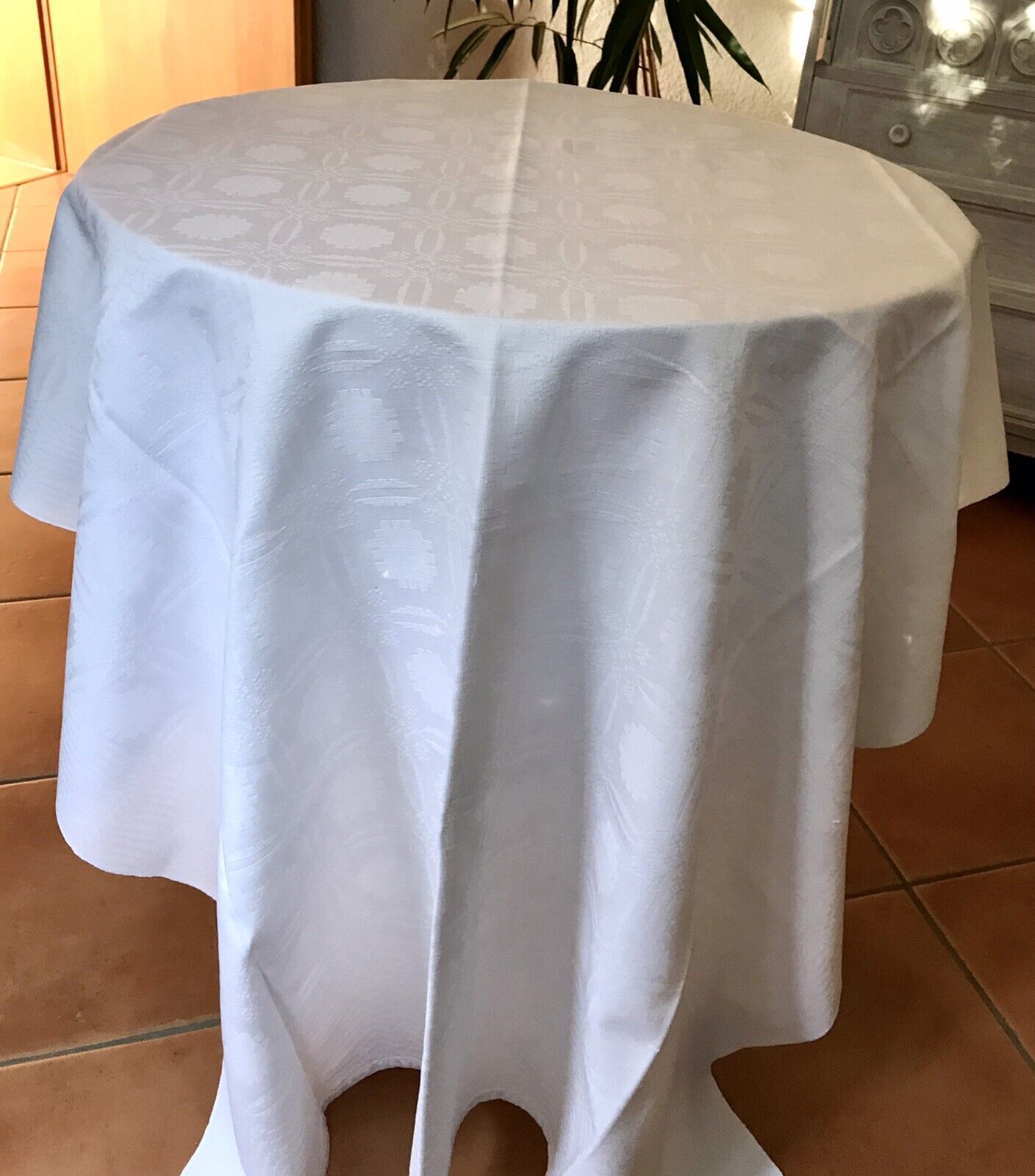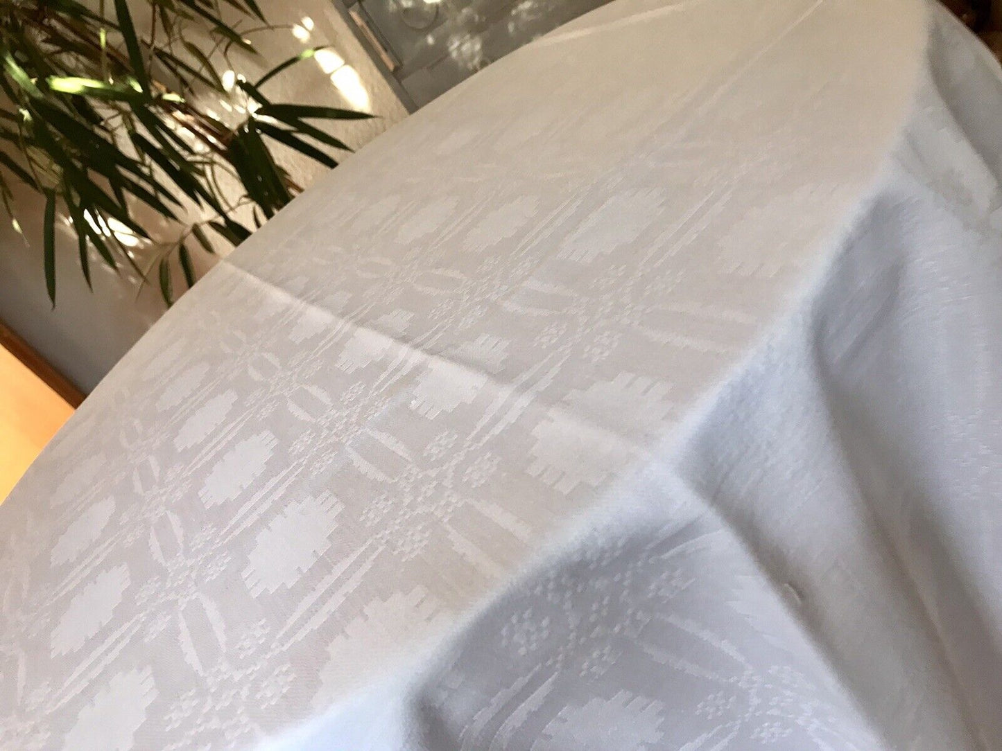 Antik Tischdecke Tafeltuch 137 x 106 weiß Damast Baumwolle Monogramm BK