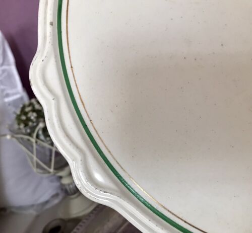 Antik Tortenplatte Kuchenplatte Keramik Goldrand grüner Rand