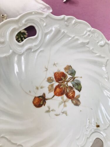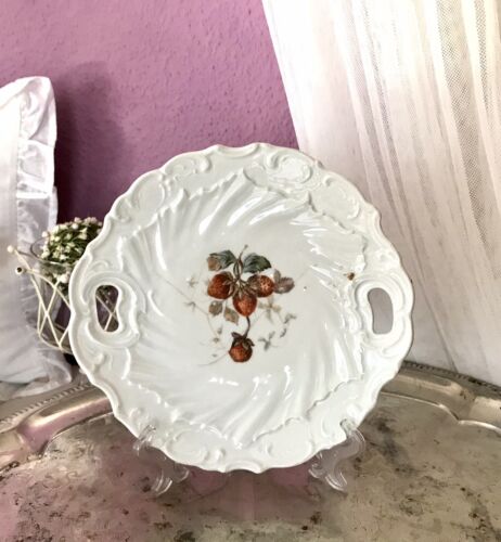 Antik Uralt Porzellan? Keramik? Schale Zierschale Erdbeeren um 1870