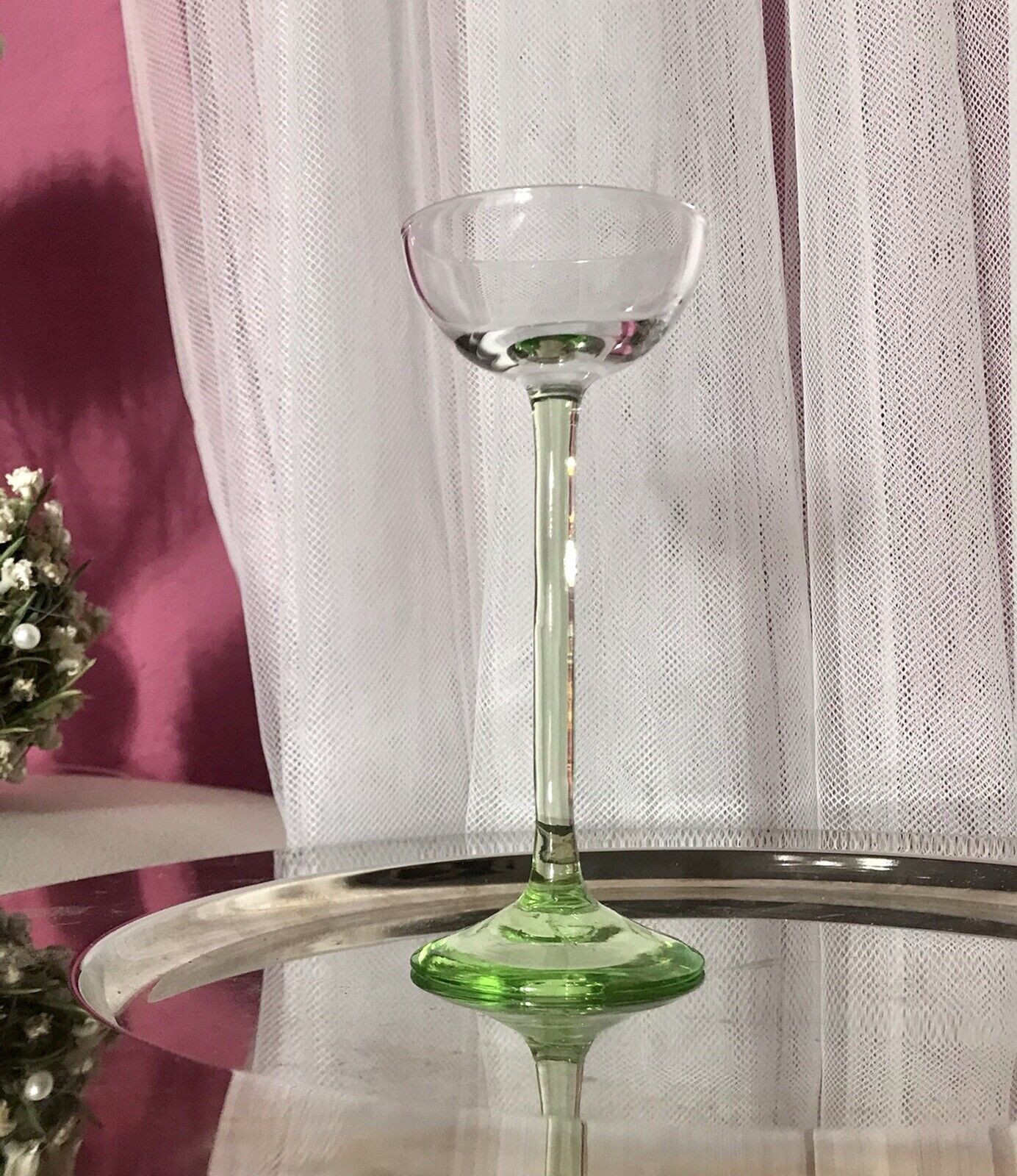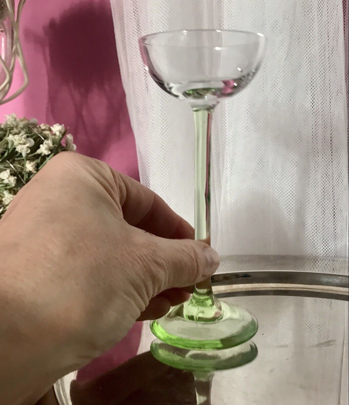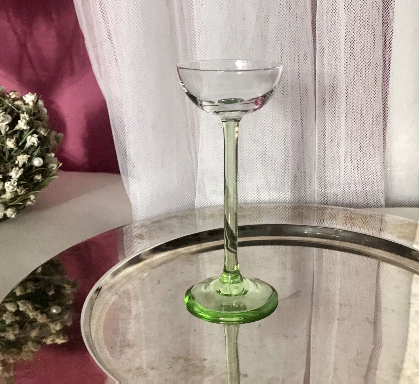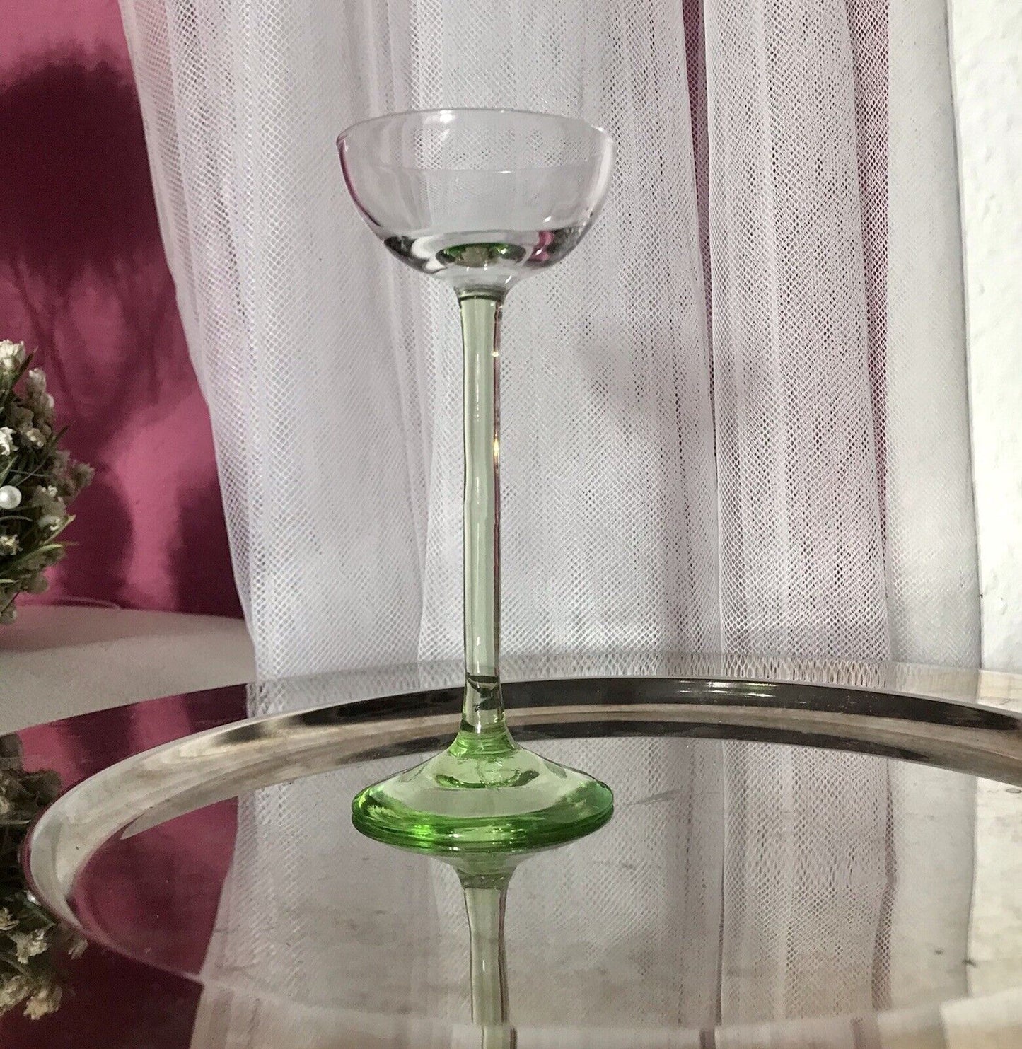 Antik Uranglas langstielig 1 Jugendstil Glas Likörglas Stengelglas grüner Stiel
