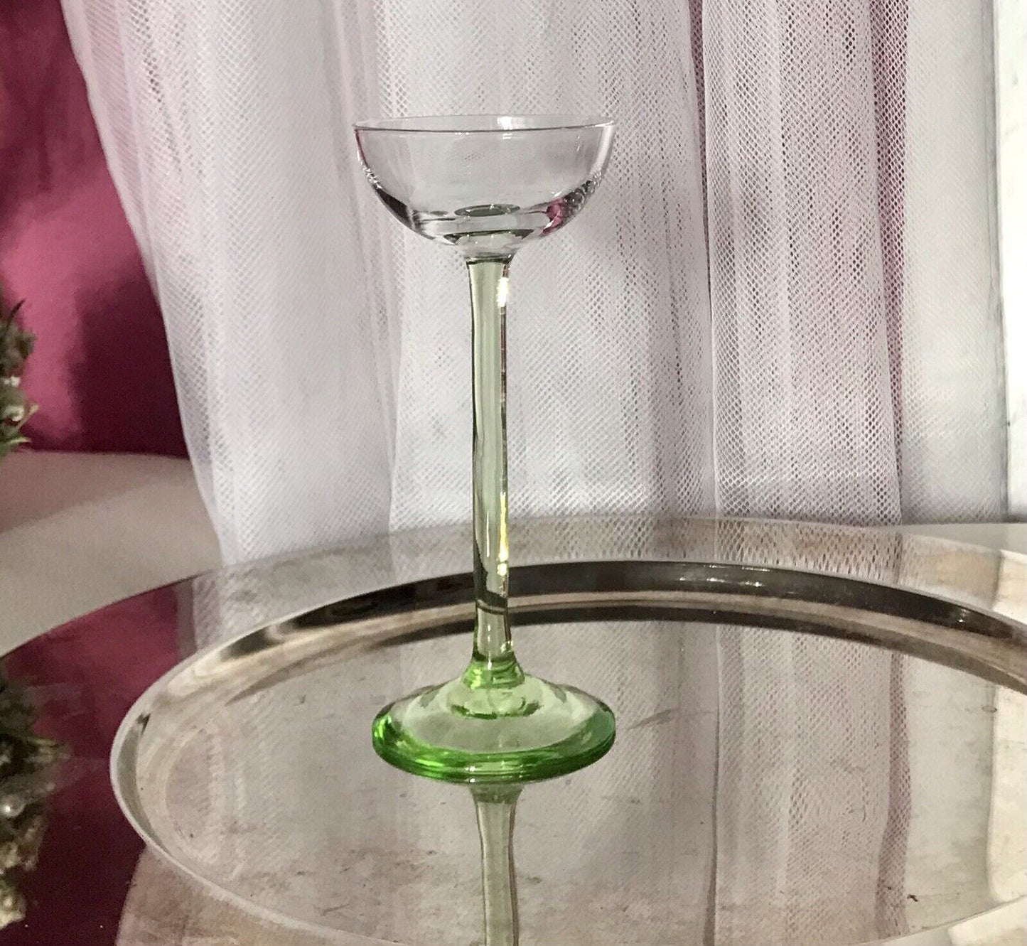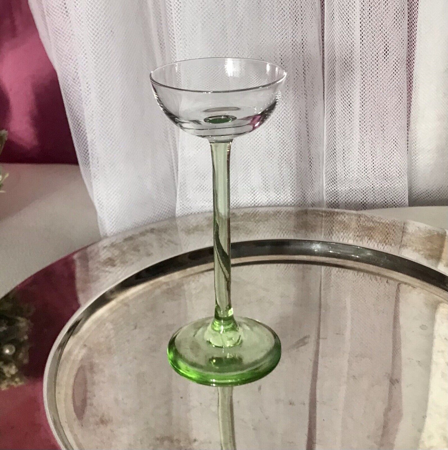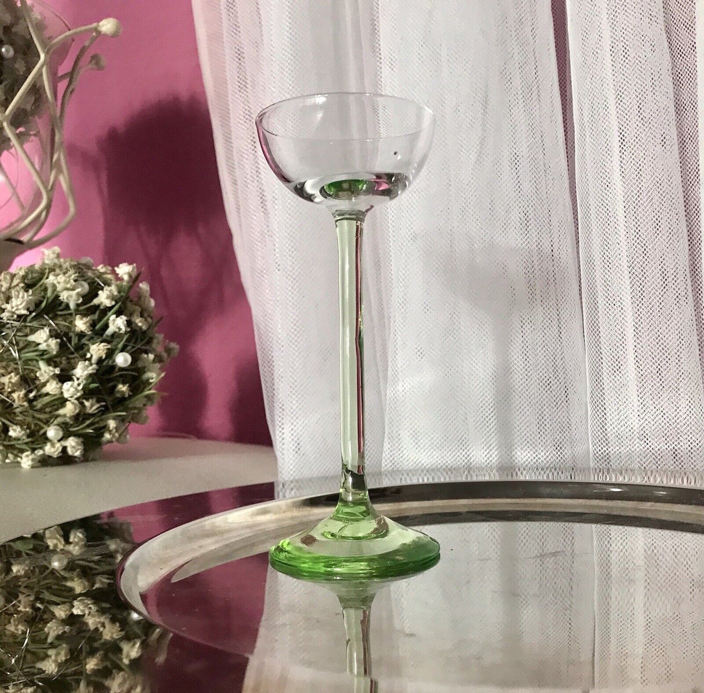 Antik Uranglas langstielig 1 Jugendstil Glas Likörglas Stengelglas grüner Stiel
