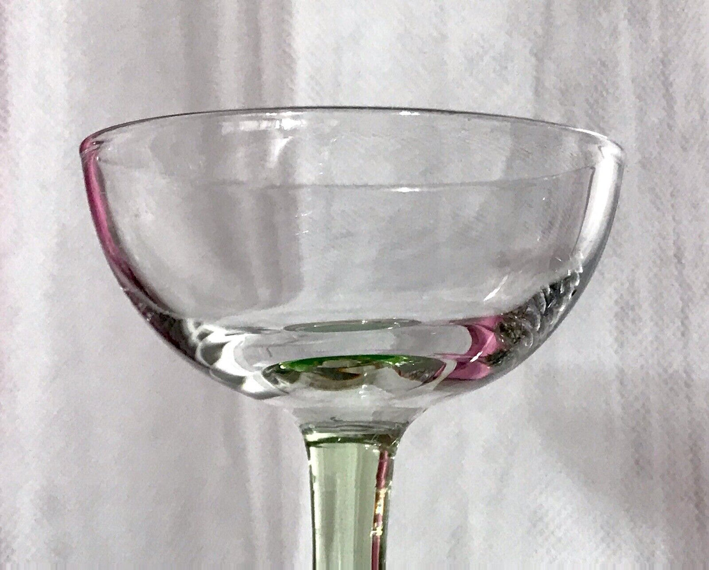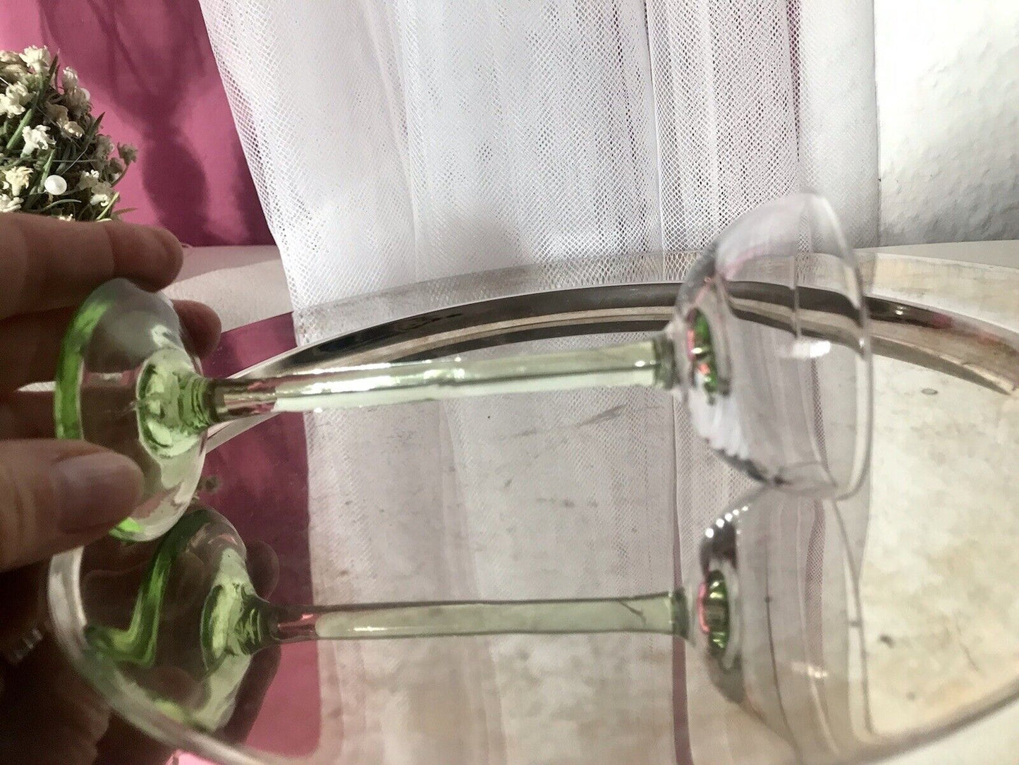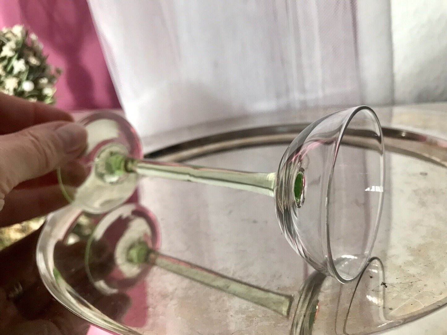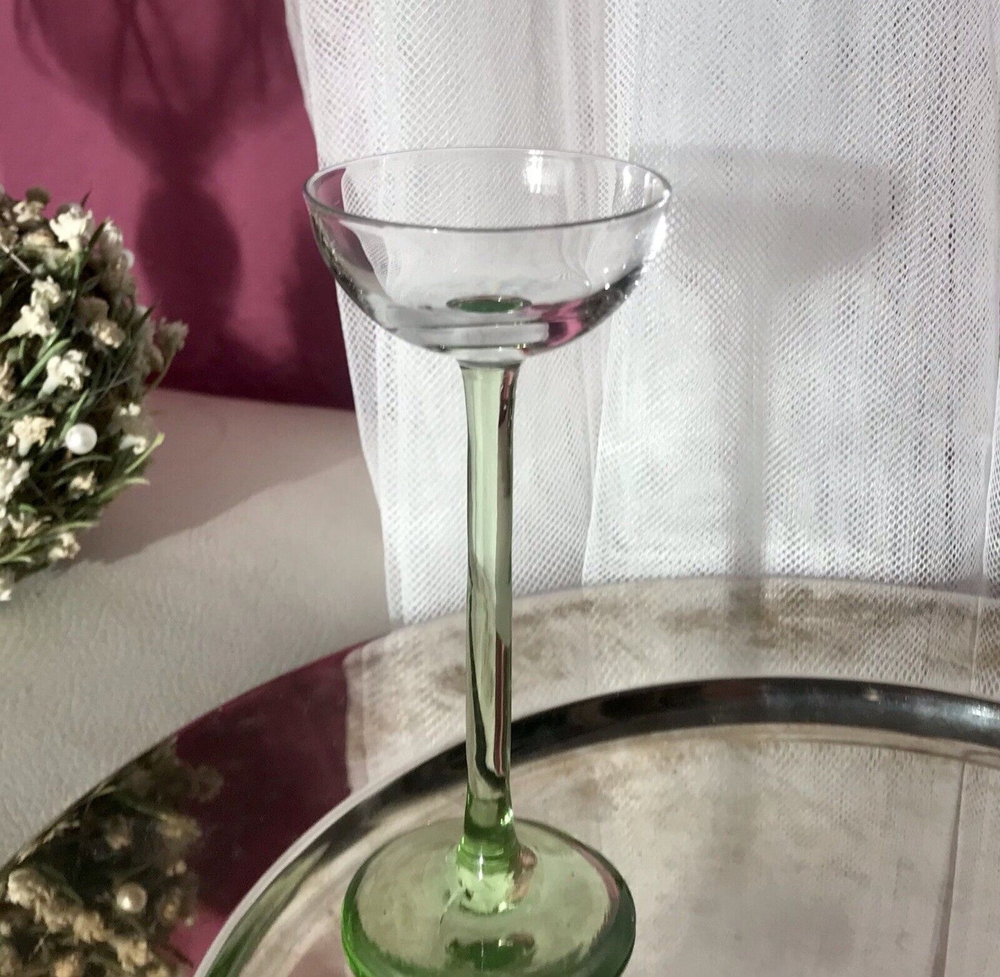 Antik Uranglas langstielig 1 Jugendstil Glas Likörglas Stengelglas grüner Stiel