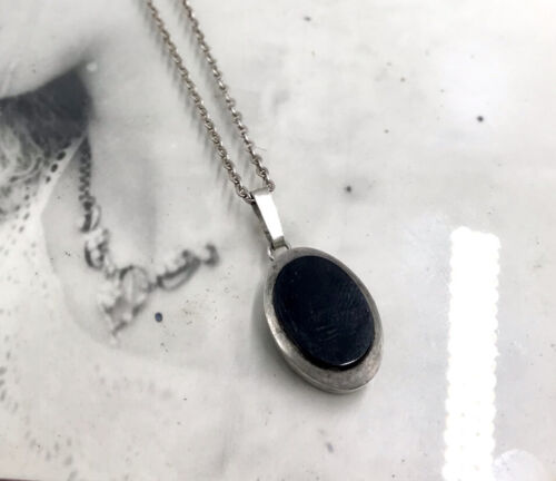 Kommodengriff präsentiert einen zauberhaften schönen ovalen antiken Anhänger aus 925er Silber und schwarzem Onyx