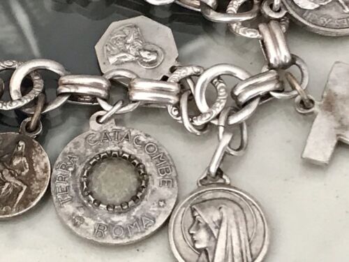 Antik Vintage DAMEN Armband Bettelarmband religiöse Charms Pilgerstätten Silber