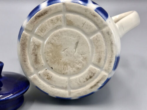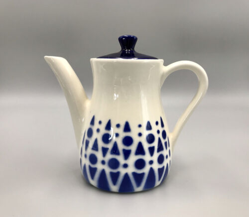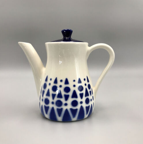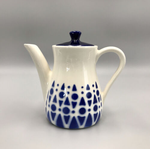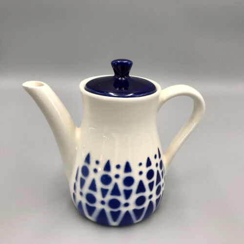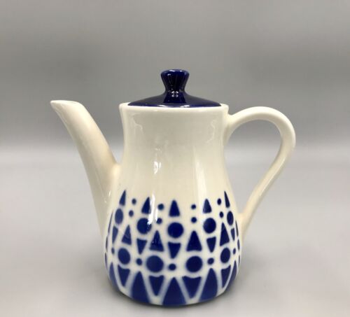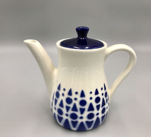 Antik Vintage WAKU Keramik kleine Kaffeekanne Kanne blaues Spritzdekor