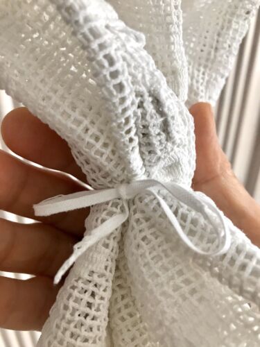 Kommodengriff präsentiert einen wunderschönen antiken weißen wohl Wäschebeutel Beutel Wäschesack Sack aus Baumwolle-Filet-Spitze/Spitze mit schönem optisch an Tupfen erinnernden Muster und fest fixiertem Bindebändchen zum Verschnüren/Verschließen