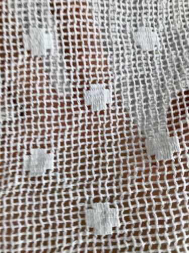 Schöne Filet-Spitze mit allover eingearbeitetem Kreuz-Muster, welches aber optisch eher wie Tupfen/Punkte wirkt.