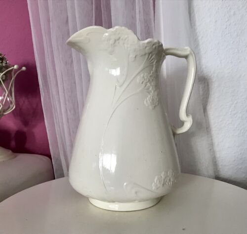 Antik Waschkrug purer Jugendstil Keramik gemarkt weiß So Schön!!