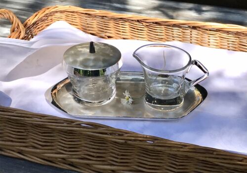 Antik WMF 50er Jahre Sahne-Satz Milch& Zucker Glas & versilbert 3 Teile