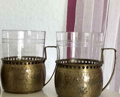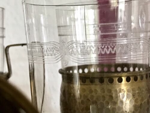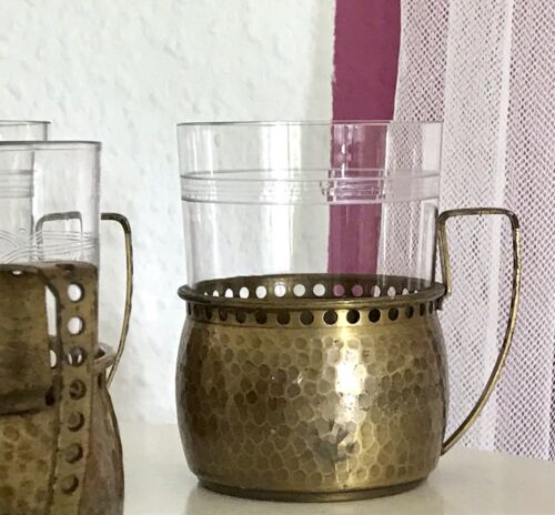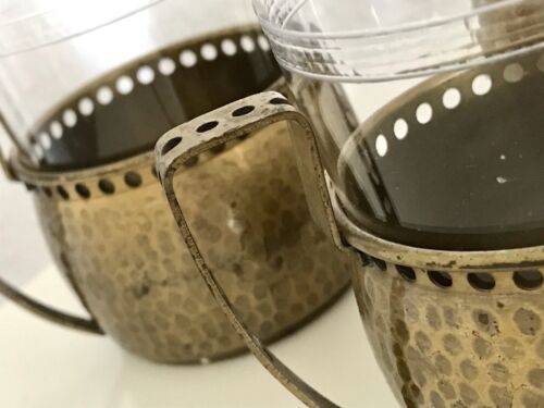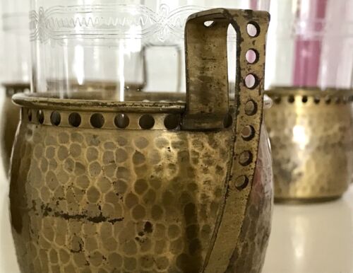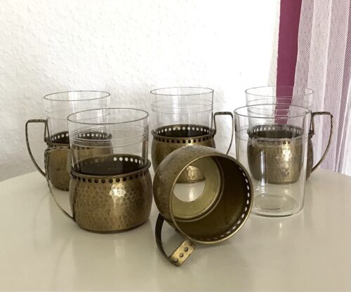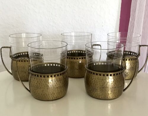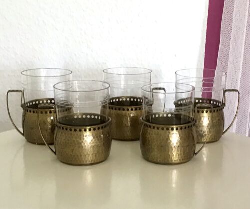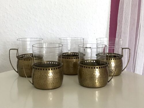 Antik WMF 5x Teeglashalter mit Glaseinsätzen Messing Tea Glass Holder