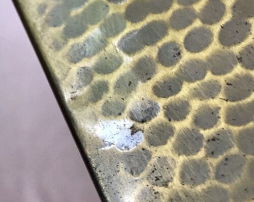 Altersgbedingte Gebrauchsspuren wie Kratzerchen, materialspezifische Messing-Verfärbungen/Patina.
