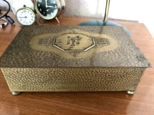 Antik WMF Art Déco Messing Schatulle Zigarrendose Dose wunderschön Monogramm NF