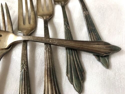 Kommodengriff präsentiert versilbertes antikes Kuchen-Besteck 6 Kuchengabeln von WMF