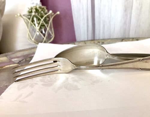 Kommodengriff präsentiert versilbertes Jugendstil /Art Déco WMF Tafel-Besteck Speisebesteck für 6 Personen (ein Tafelmesser fehlt, es sind aber auch andere Messer da, siehe Bild!)