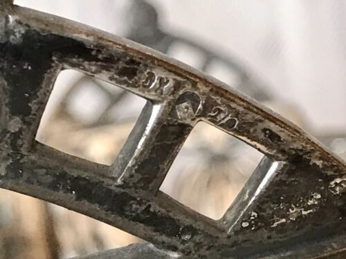 Ursprünglich gewollt oxidiert, erkennbar an der OX Punzierung, sollte auch nicht poliert werden! So ist es von Anfang an gewollt, damit der Glaseinsatz den schönen Kontrast bildet.