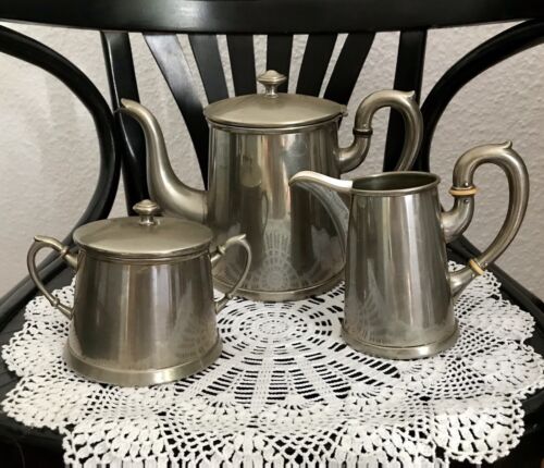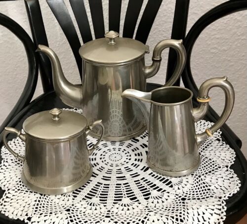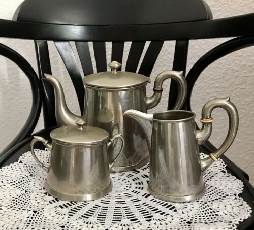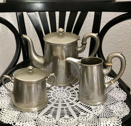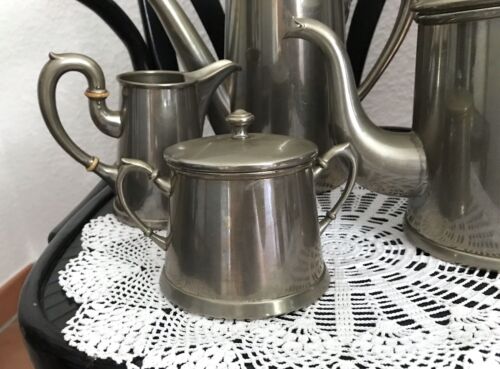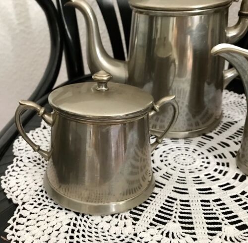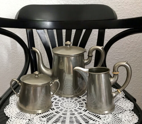 Antik WMF Straussenmarke Kaffeekern Kanne Sahnegießer Zuckerdose Reinnickel 1903