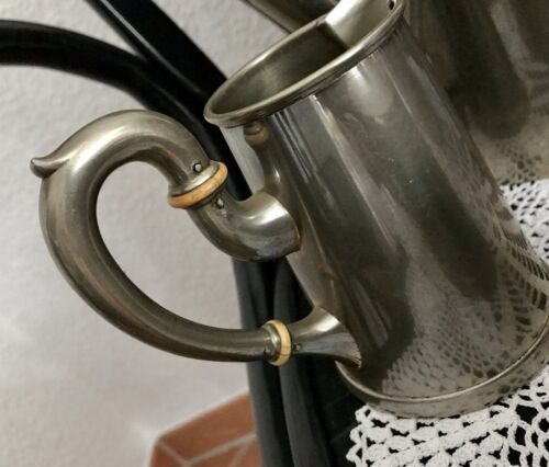 Die Griffe sind schön geschweift geformt und der Sahnegießer hat noch 2 wohl Bakelit-Ringe darin eingearbeitet.