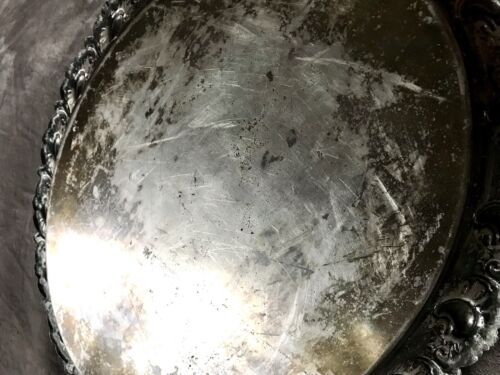 Das wunderschöne ovale versilberte Tablett ist schwer und recht massiv.