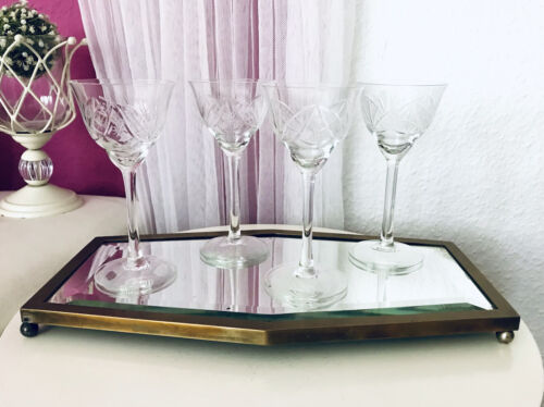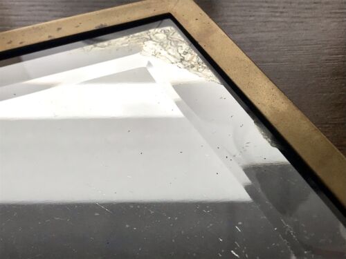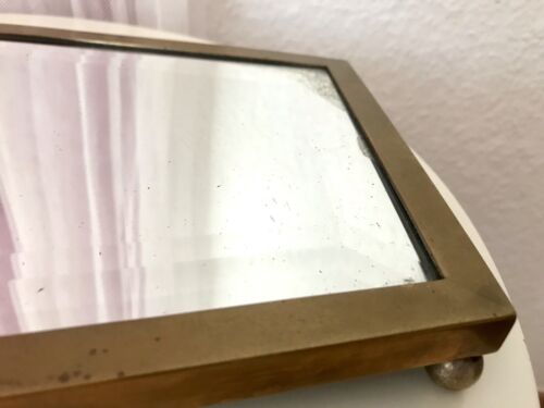 Antik wundervoll Art Déco Tablett Glas Spiegel facettiert Messing Holz Schwer