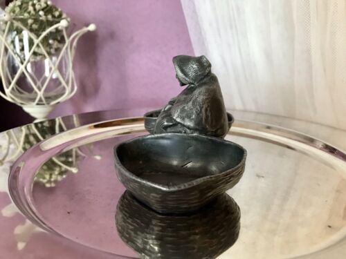 Antik Zinn Saliere Doppel-Salznapf Jugendstil Greisin mit Körben