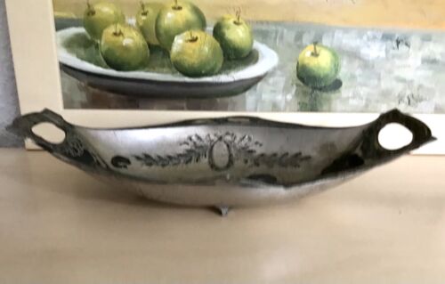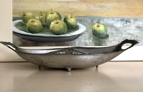 Kommodengriff präsentiert eine wunderschöne antike versilberte ovale recht große Zinnschale Jugendstil-Schale Schale Zinnschale