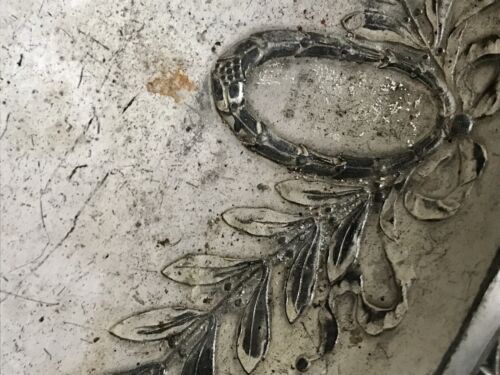 Recht groß in Grundform oval und in typischem Jugendstil gearbeitet mit schönem organischem reliefierten Jugendstil-Muster mit Girlanden/Behänge/Kränze und Schleifen.