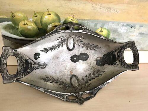 Antik Zinn Schale versilbert Art Nouveau Jugendstil 1900 Zinnschale Girlanden