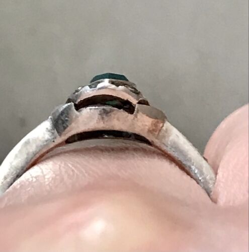 Antikisiert Art Déco Stil Damen Ring grüner Stein Silber 925 Gr.57 58