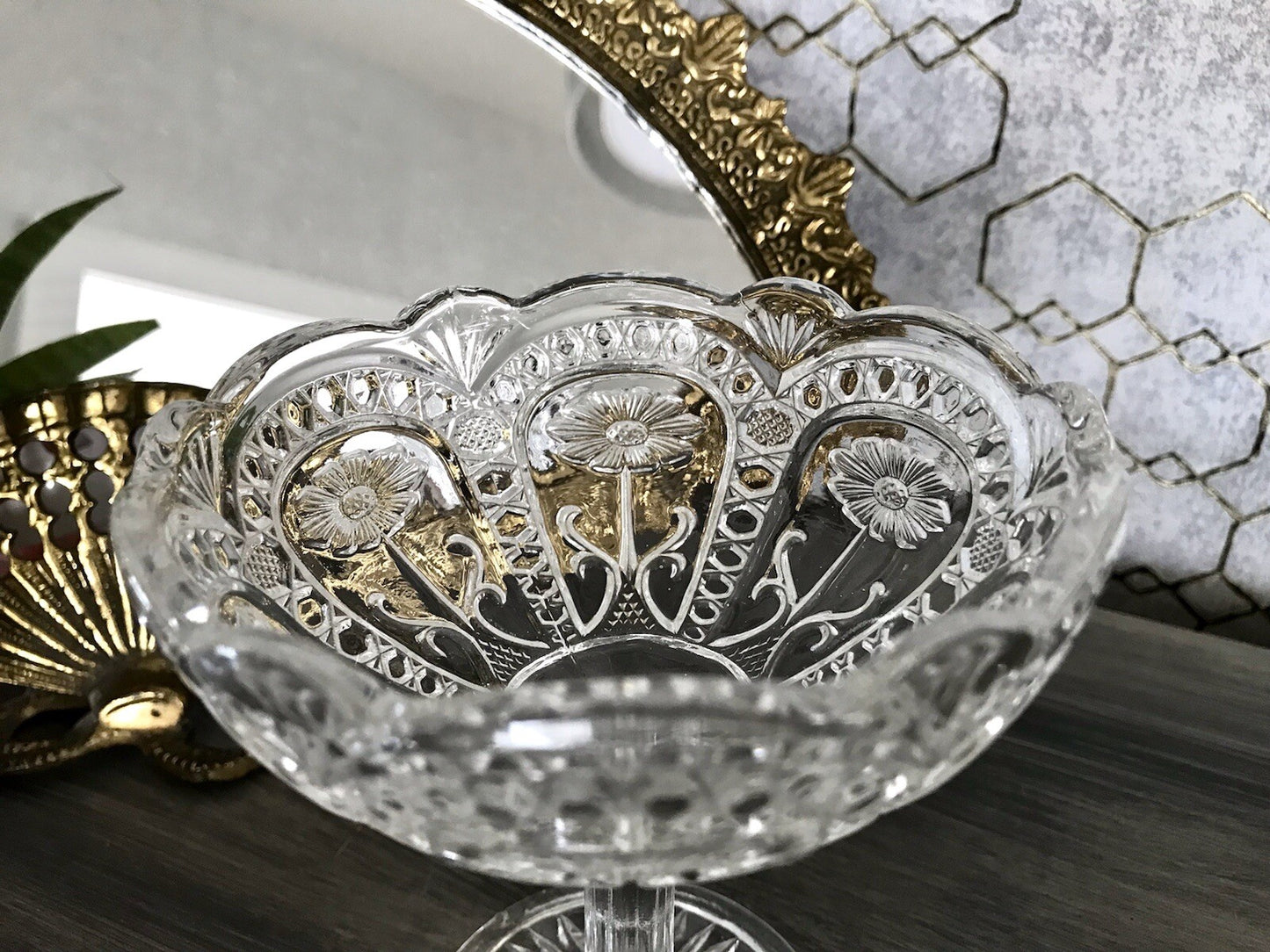 Sehr schönes dekoratives Stück aus wunderschönem kultigen farblosen Pressglas. Sieht sehr dekorativ aus.