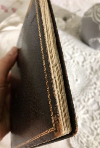 In braunem Ledereinband mit goldfarbenen Ornanenten.