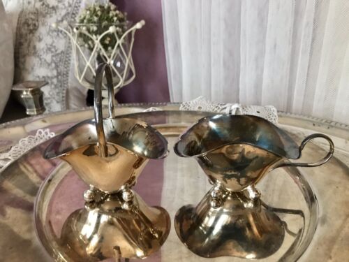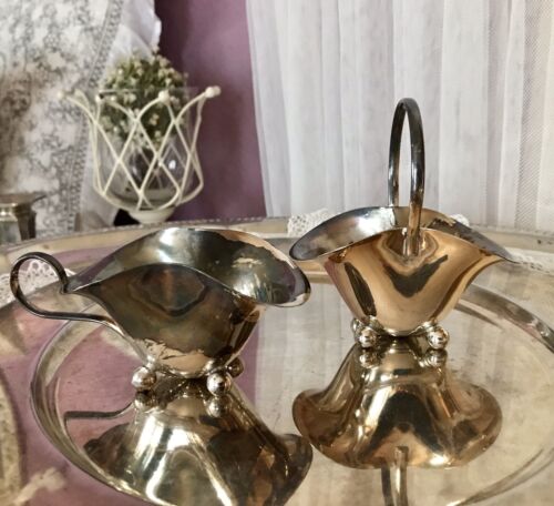 Kommodengriff präsentiert einen wunderschönen alten 2 teiligen versilberten Sahne-Satz Milch&Zucker Zuckerschale& Sahnegießer