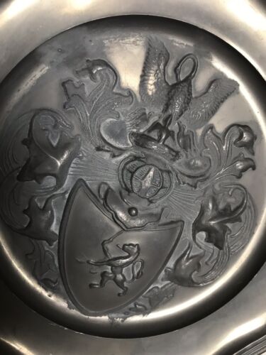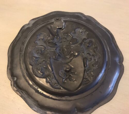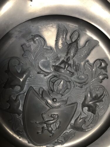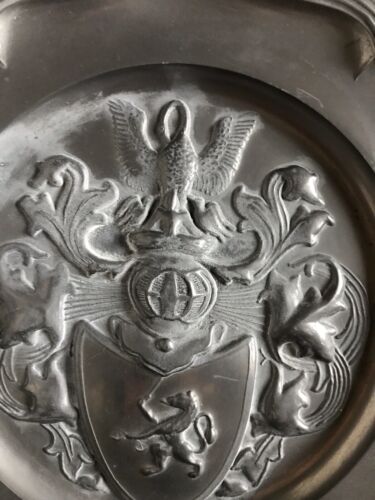 Blei Teller Wandteller Zierteller Bleiteller Wappen Löwe Schwert Adler