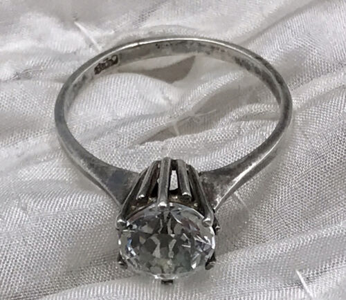 Edel Damen Solitär Ring farbloser Stein Silber 830 Gr.52 16,6 SUPER Design