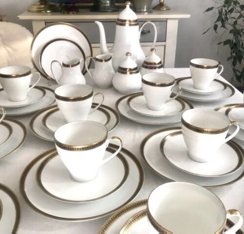 EDEL elegant Melitta Porzellan Kaffeeservice 11 Personen weiß Goldrand