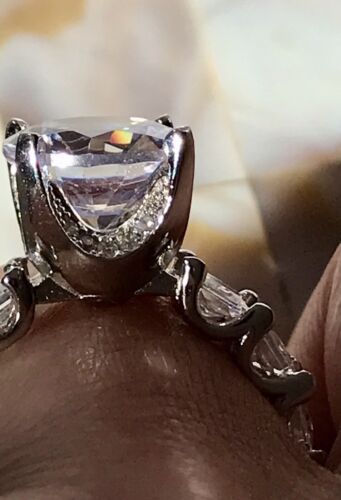 Kommodengriff präsentiert einen edlen zauberhaften wundervoll ausgeformten prächtigen sehr eleganten glamourösen Silberring Damenring in Gr.58 Durchmesser innen ~ 18,4 mm besetzt einem großen wundervoll geschliffenen Stein wohl Cubic Zirkonia und auch die gesamte Ringschiene ist mit einer Reihe von kleineren Cubic Zirkonia besetzt