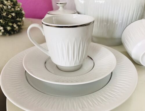 Edel Hutschenreuther Porzellan Kaffeeservice 12 Pers. weiß Platinrand 60er